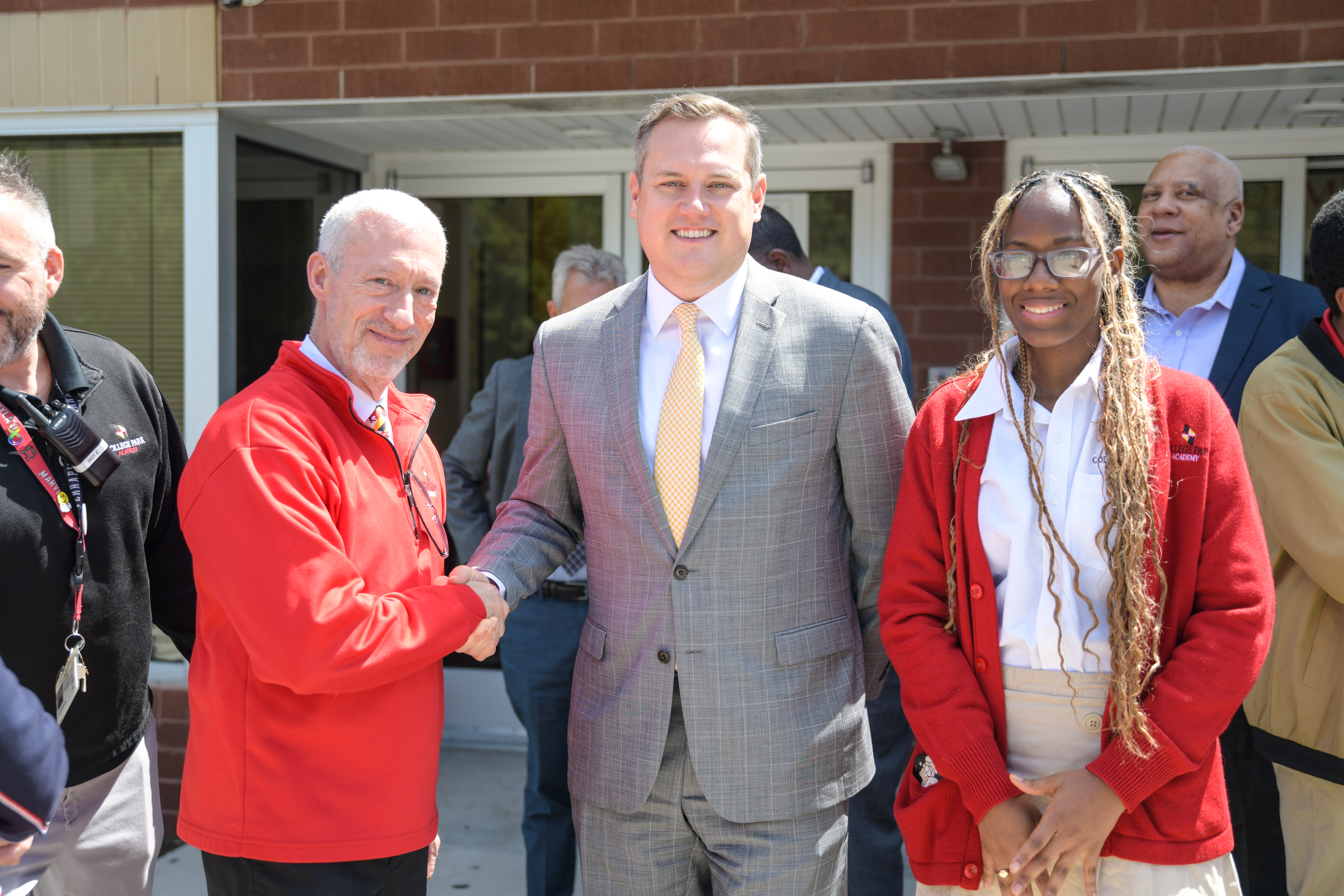 Maryland State Board of Education President Dr. Joshua Michael with CPA student and Principal.