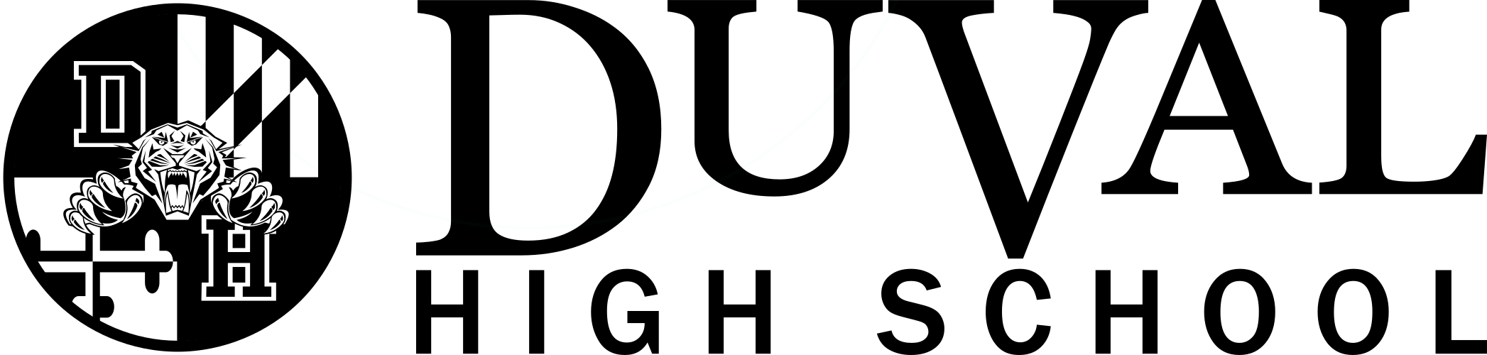 Athletic Logo with Wordmark - This is another alternate logo that includes a wordmark reading DUVAL TIGERS. It is for use of DuVal Athletics and should be used when the school name is needed.