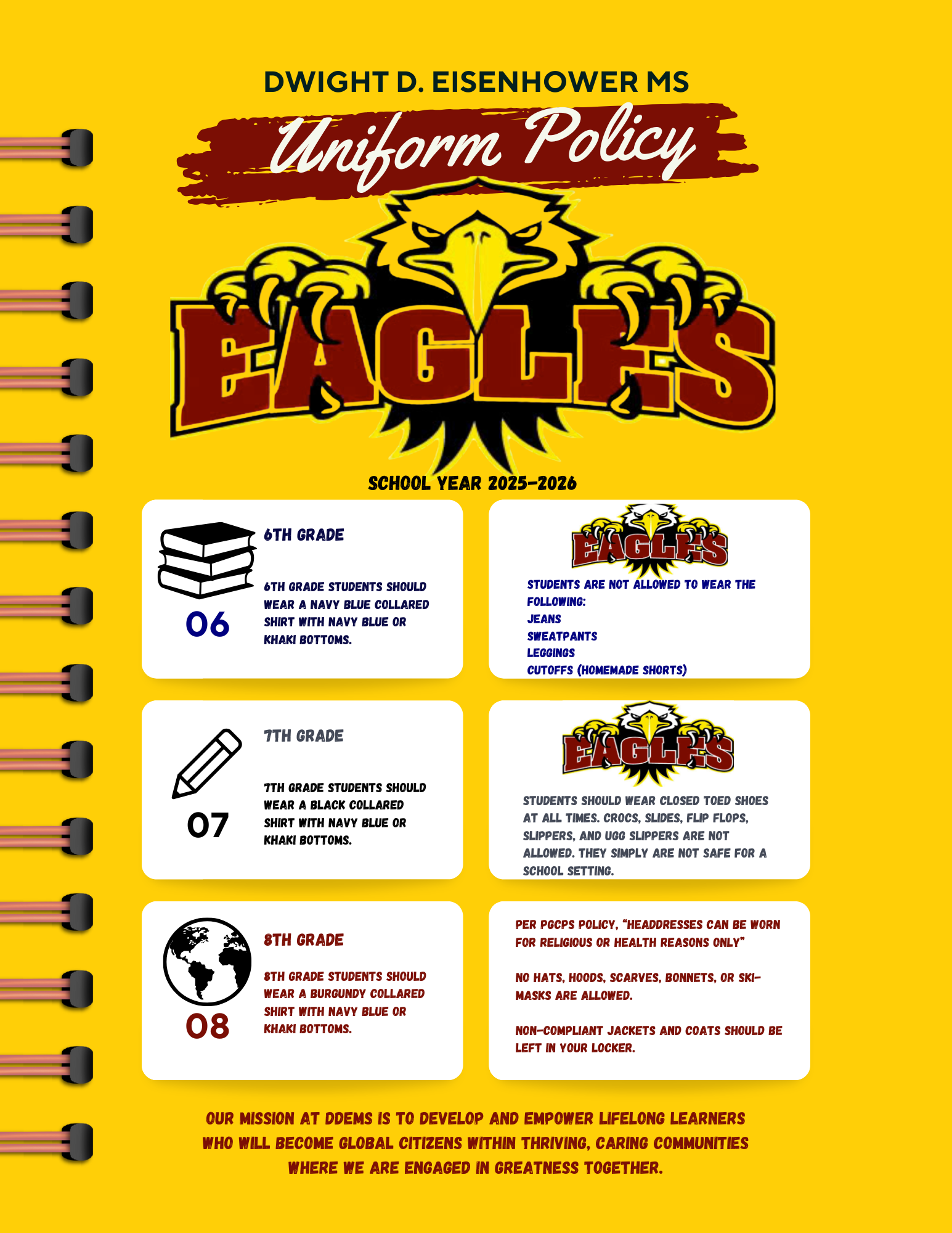 - 6th Grade: Navy blue collared shirt with navy blue or khaki bottoms