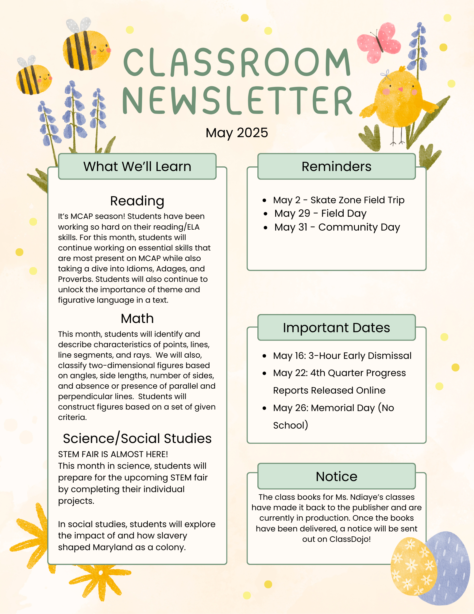 1st Grade May 2025 Newsletter