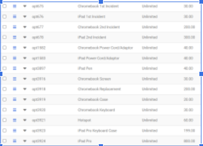 Lost Devices or Chargers: Students who are unable to locate their computing device and/or peripherals should be assessed the replacement cost for the lost device. |