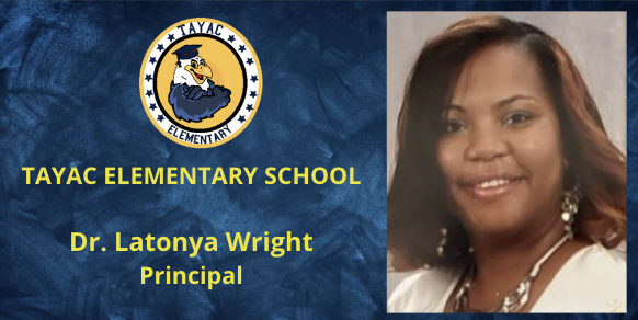 I'm humbled and thrilled to be the principal of Tayac Elementary School. I have over 24 years of educational experience in Prince George's County Public Schools. I love being an educator and I am here to serve the Tayac ES community. My goals are to love, listen, learn, and lead. I am excited about our upcoming school year and I look forward to the great experiences to come. It is my hope that you will join me and work together to give our children all the love and educational experiences they deserve.